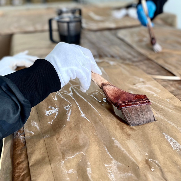 当社の柿渋撥水米袋は、職人が1枚1枚丁寧に三度塗りの手仕上げ製法をしています。お米や玄米以外にも柿渋米袋に▪小豆 ▪大豆 ▪イモ類を保存している方もいらっしゃいます。